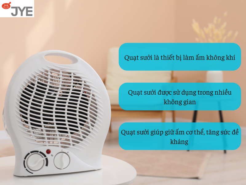 Quạt sưởi là thiết bị điện được sử dụng để tạo ra luồng không khí ấm giúp không gian xung quanh ấm áp hơn. Đây là một loại quạt điện được thiết kế đặc biệt để phát ra không khí nóng, giúp tăng nhiệt độ trong phòng.