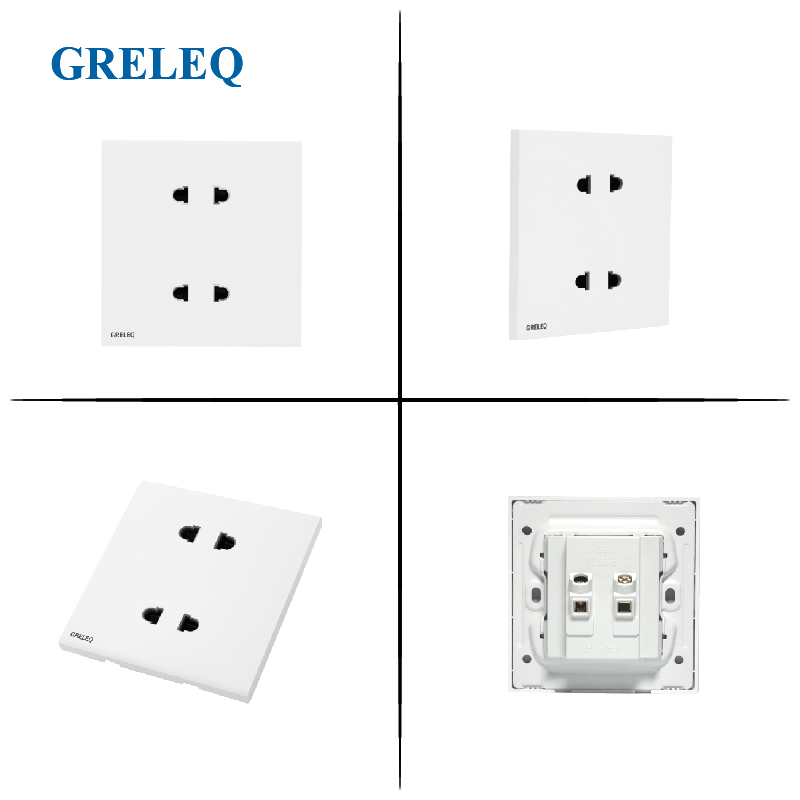 Ổ cắm đôi 2 chấu Greleq được thiết kế với 2 khe cắm riêng biệt, cho phép kết nối cùng lúc hai thiết bị điện trong một mặt ổ. Sản phẩm mang đến sự tiện lợi, tiết kiệm diện tích lắp đặt và phù hợp với nhiều không gian như gia đình, văn phòng, cửa hàng hay công trình dân dụng.